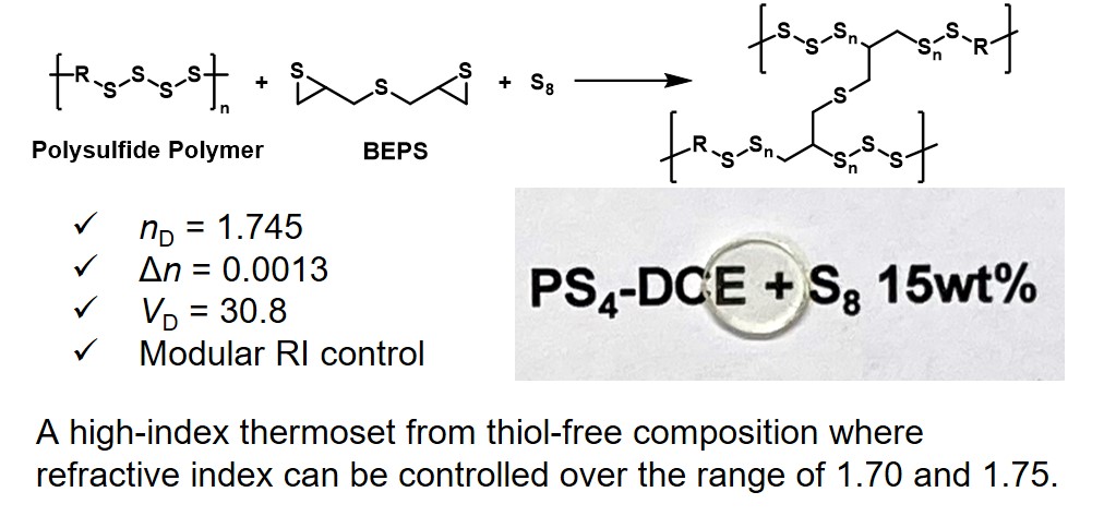 30. Yujin Jeon, Jisung Choi, Donghwa Seo, Soon Hwa Jung, Jeewoo Lim,* “Low birefringence and low dispersion aliphatic thermosets with a high and tunable refractive index” Polym. Chem. 2023, 14, 1117-1123.